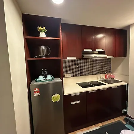 Découvrez le confort ultime dans la cuisine de cette propriété, équipée d'une cafétière/théière électrique, d'un réfrigérateur et de la vaisselle. La gare routière KK Central est juste à quelques pas de l'appartement.